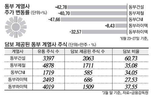 동부 계열株 최대48%↓..투자자 '눈물'