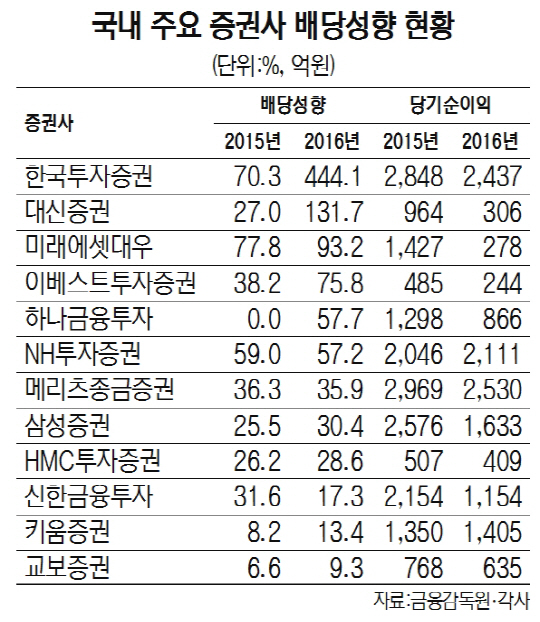 주요 증권사, 수익 줄었어도 배당 늘렸다